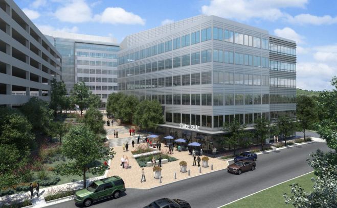 Building A & B (Two Merriweather), and parking deck, Crescent Neighborhood, looking North from Divided Sky Lane (http://www.designcollective.com)