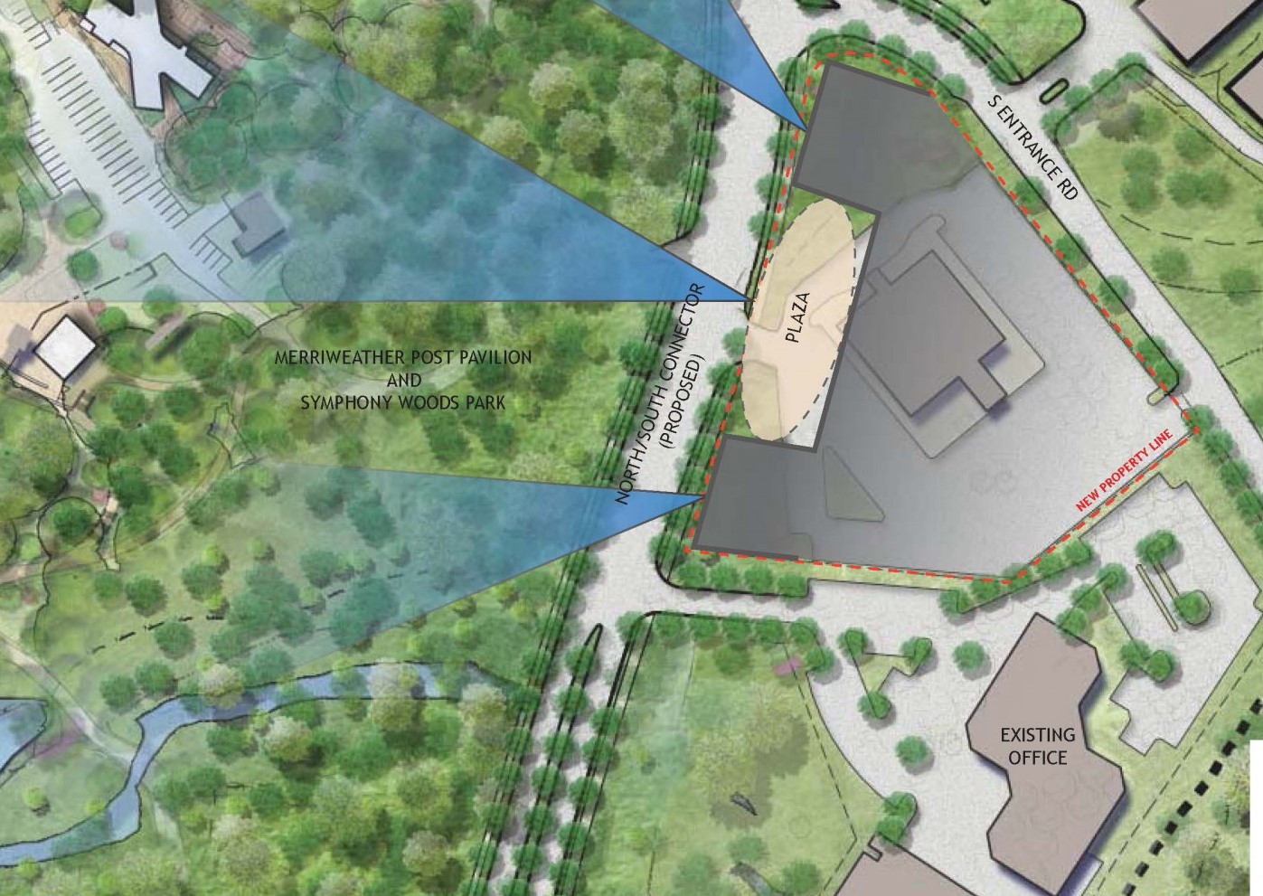 Columbia Art Center relation to Symphony Woods (Design Collective) – The Butterfly guest services building is upper left