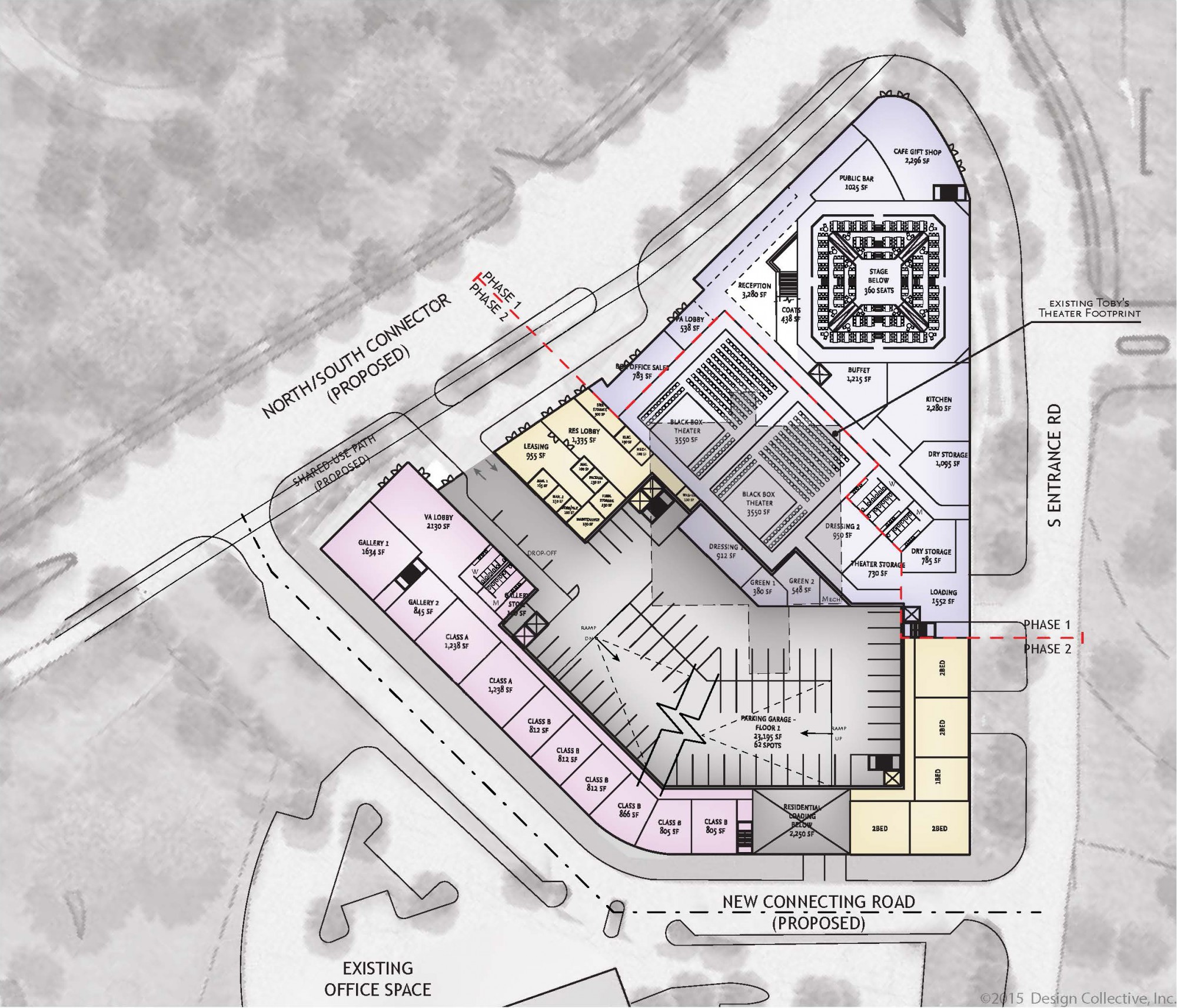 Ground floor site plan, Columbia Arts Center, Crescent Neighborhood (Design Collective)